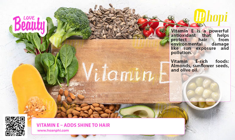 Vitamin E is a powerful antioxidant that helps protect hair from environmental damage like sun exposure and pollution.