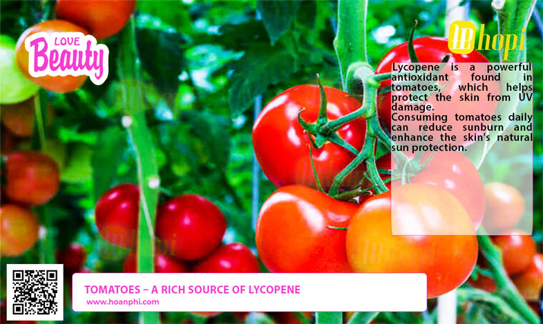 Lycopene is a powerful antioxidant found in tomatoes, which helps protect the skin from UV damage. Consuming tomatoes daily can reduce sunburn and enhance the skin's natural sun protection.