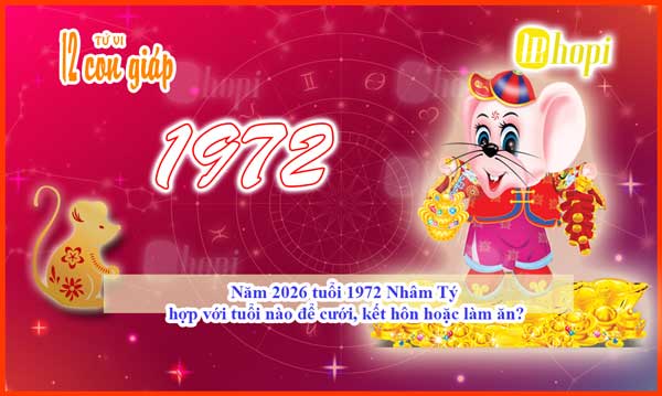 In terms of the five elements, the Water element of 2026 (Heavenly River Water) nourishes the Wood element of the 1972 Rat (Mulberry Wood). This is a very good sign, indicating that 2026 will bring positive energy, support, and luck to people of the Rat sign. However, the Earthly Branches Tý (Rat) and Ngọ (Horse) are in the Four Pillars of Conflict (Rat - Horse - Rabbit - Rooster), which signals potential difficulties and obstacles. Therefore, choosing a compatible partner becomes even more important to resolve conflicts and enhance auspicious energy.